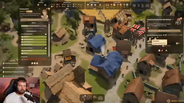 01:51:45Nachdem sich abzeichnet, dass das Hauptspiel nicht zuverlässig läuft, gibt der Streamer das Vorhaben auf. Stattdessen wechselt er zum Spiel Foundation. Es wird eine kurze Unterbrechung für eine Pause eingelegt. Nach der Pause wird mit dem Aufbau im Siedlungsspiel fortgefahren. Es werden neue Bewohner begrüßt, Ressourcen wie Steine und Honig verwaltet und die Infrastruktur des Dorfes, wie Taverne und Fremdenzimmer, erweitert.
