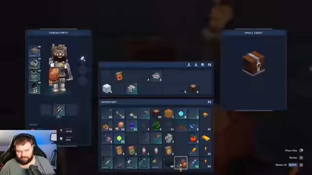 02:04:43Für eine bevorstehende Reise zur Rohstoffbeschaffung beginnt Streamn tobiltorlp sein Inventar zu organisieren. Er leert seine Inventarkisten und packt Holz, Azure Lock, Mabelkoppel und andere Rohstoffe hinein, um Gewicht zu sparen. Er plant, neue Ressourcen wie Thorium zu farmen, um bessere Gegenstände herstellen zu können. Neben den nützlichen Materialien packt er auch persönliche Gegenstände wie einen Briefkasten mit ein, um sie für sich behalten zu können, und bereitet sich auf den Aufbruch vor.