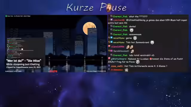 01:19:28Während des Streams wird über das aktuelle Unwetter in München gesprochen, das der Streamer mit Spannung betrachtet. Nebenbei erwähnt er, dass die ZDF-App auf seinem iPad nicht mehr funktioniert, ohne den genauen Grund zu kennen. Auch einige Chat-Interaktionen und persönliche Bemerkungen zur Wetterlage und seinem Befinden finden Erwähnung.