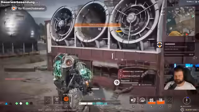 01:06:54Im Tutorial-Modus erkundet der Streamer die Umgebung, zerstört Objekte und sammelt Ressourcen wie Reparaturkits, Energiezellen und Munition. Er interagiert mit dem Loot-System und installiert verschiedene Ausrüstungs-Kits. Nach dem Tutorial wählt er den Scharmützel-Modus, um das Gameplay im PvE-Stil gegen computergesteuerte Gegner und Maschinen zu testen. Während des Spiels sind beeindruckende Grafik und das freie Zerstörungspotenzial hervorzuheben, was das Spielgefühl positiv beeinflusst.