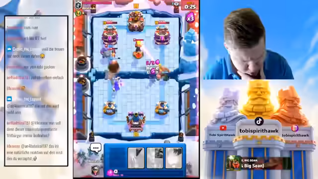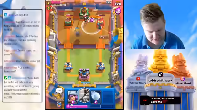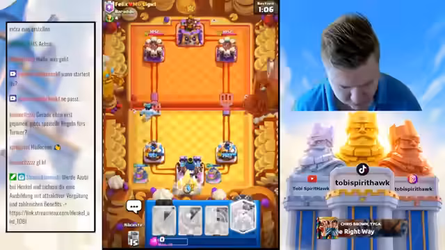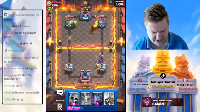 03:38:45Das letzte Turnier beginnt mit normalen Decks, und der Streamer wünscht allen Teilnehmern viel Glück. Er spielt gegen einen Gegner namens Andy und kommentiert dessen Deck. Die Diskussion dreht sich um die Effektivität bestimmter Karten und die Strategie im Spiel. Der Streamer betont, dass er aus Leidenschaft streamt und nicht des Geldes wegen. Es wird über mögliche zukünftige Evo-Karten wie den Mini-Pekka-Evo spekuliert, basierend auf Leaks, die eine Wiederbelebung nach dem Tod vorsehen, was als potenziell übermächtig angesehen wird. Er reflektiert über die Nachteile von TikTok, insbesondere die Auswirkungen auf die Aufmerksamkeitsspanne der Jugend, obwohl er die Plattform selbst nutzt. Die Diskussion über Deck-Maxing und die Fähigkeit, auch mit schlechten Decks aufzusteigen, rundet das Match ab.