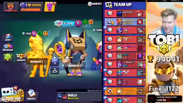 09:13:40Nachdem Landy den neuen Brawler auf 1.000 Trophäen gepusht hat, formuliert der Streamer sein neues Ziel: Er möchte den Brawler so schnell wie möglich auf Platz 1 global pushen. Um dies zu erreichen, sucht er aktiv nach zwei Spielern, die den Brawler bereits auf Power 10 oder 11 haben und ihm kostenlos im Ranked-Modus helfen können. Er versichert, dass die Hilfe nicht an Zwang geknüpft ist, und plant, den Brawler solange zu pushen, bis er den ersten Platz erreicht, es sei denn, jemand pusht noch höher.