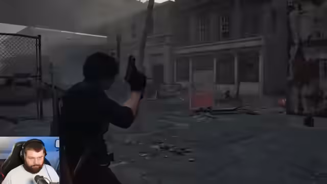 01:50:20Ein unangenehmer Geräuschschreck durchbrech die Stille. Er wird von einem Gegner beworfen, der ihn anschreit und angreift. Nach einem kurzen Kampf und dem Nachladen der Waffen konfrontiert der Streamer die Gegner. Er nutzt die Umgebung, um sie zu besiegen, und merkt, dass die Zombies etwas anders aussehen als die bisherigen Gegner, was seine Neugier weckt.