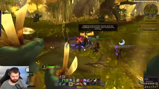 02:45:00Während des Streams treten wiederholt technische Probleme auf. Der Streamer bemerkt, dass seine Talentpunkte und die Leistenkonfiguration nicht richtig gespeichert werden. Nachdem er aus dem Spiel aus- und wieder eingeloggt ist, sind seine Fortschritte zurückgesetzt. Im Chat erhält er den Tipp, dass die Talente aktiviert werden müssen. Parallel dazu spricht er über die umfangreiche Spielwelt und die Möglichkeit, WoW auch alleine zu spielen, was jedoch für Events wie Raids weniger ideal ist.