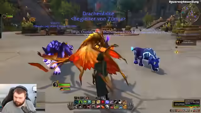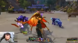 00:44:44Nachdem der Level-Boost abgeschlossen ist und der Charakter auf Stufe 90 ist, beginnt die eigentliche Spielphase. Der Streamer navigiert durch die Hauptstadt Orgrimmar, um sich zurechtzufinden und einen Mitspieler zu treffen, da das Spiel gemeinsam gespielt werden soll. Die initialen technischen Schwierigkeiten bei der Gruppeneinladung werden gelöst, indem der Mitspieler dem Streamer eine Anfrage sendet. Die ersten Fertigkeiten und Aktionsleisten werden erkundet und der Streamer stellt fest, dass sein Jäger im Treffsicherheits-Specialization ohne Pet spielt.