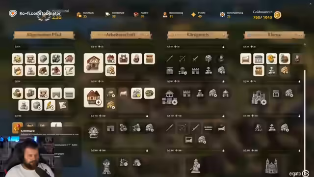01:00:08Nach einer technischen Pause wird das Spiel Foundation gestartet. Der Streamer baut sein Kloster weiter aus und konzentriert sich auf die Freischaltung und den Bau von Gebäuden wie der Schatzkammer, der Küche und einer ersten Taverne. Dabei müssen strategische Entscheidungen getroffen werden, um die Zufriedenheit der Dorfbewohner zu gewährleisten und die Wirtschaft am Laufen zu halten. Besonderes Augenmerk wird auf die Lagerung von Rohstoffen wie Hopfen und Weizen für die Bierproduktion gelegt.