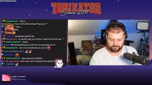 01:33:45Der Streamer unterbricht das Gameplay, um seinen Hund Karu zu streicheln und ihm Futter zu geben. Dabei kommt es zu technischen Problemen mit einer launischen Kaffeemaschine. Währenddessen erörtert er mit den Viewers sein Sirup-Experiment, bei dem er verschiedene Geschmackssorten testet. Besonders der Holundergeschmack wird als Favorit hervorgehoben. Die Unterbrechungen zeigen den Alltag des Streamers und die Interaktion mit seinem Haustier.