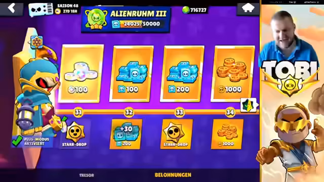 00:27:06Nach Abschluss des Brawler-Pushs wechselt der Fokus auf einen Account mit einer Million Trophäen. Auf diesem Account wird ein umfassendes Pro-Pass Plus Opening durchgeführt. Dies ist der Hauptinhalt der zweiten Stream-Hälfte. Alle Inhalte des Passes, darunter neue Skins, Belohnungen und Credits, werden sofort geöffnet und vorgestellt. Tobi betont dabei mehrfach, wie wertvoll der Pass ist und stellt die Qualität der neuen Skins, insbesondere des Codelius-Skins, positiv heraus und testet diese im Trainingsmodus. Wichtigstes Ziel dabei ist das Sammeln von Credits, um das Erreichen des Rangs "Star Wars Fame" zu ermöglichen.