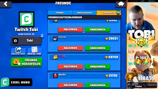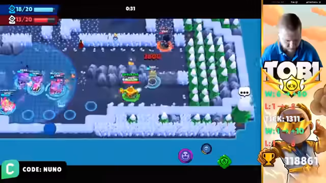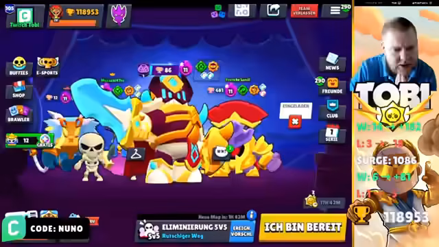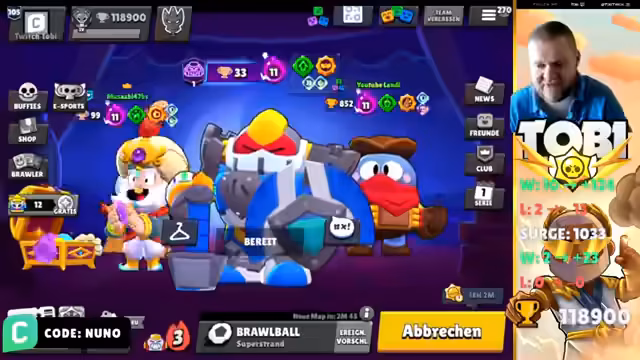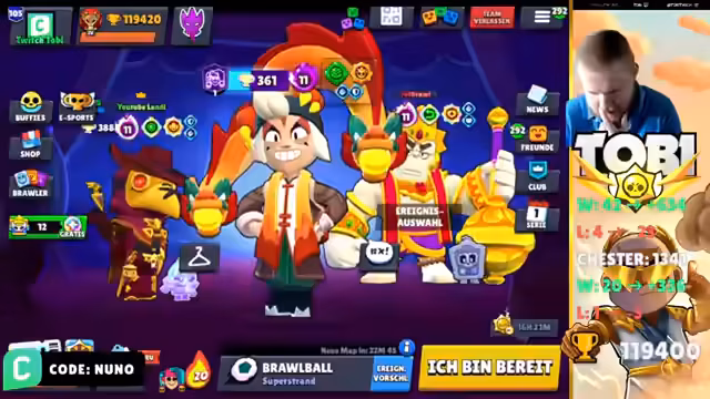 04:36:10Nach einigen technischen Vorbereitungen beginnt die Aufnahme eines Videos, das den Weg zum 120.000-Trophäen-Meilenstein dokumentieren soll. Mit einer speziellen Brawlboy-Kombi, die die gesamte Karte aufdeckt, werden die Gegner schnell und effizient eliminiert. Innerhalb weniger Spiele knackt Tobi den Meilenstein und erreicht Platz 4 in Deutschland. Er startet direkt im Anschluss mit dem Plan, in den nächsten Tagen auch die 130.000 Trophäen zu erreichen und kündigt an, dass dieses Video sehr schnell und problemlos verlaufen ist.