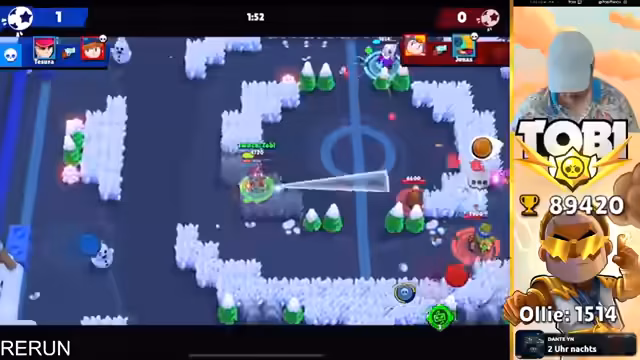 18:37:59Der Streamer setzt seine Spiele mit dem Brawler Oli fort und wird aus Lobbys gekickt, weil Mitspieler den Brawler nicht mögen. Dies führt zu Frustration, da er den Oli für seine globalen Ränge benötigt und dessen Potenzial sehen will. Er beschwert sich über das schlechte Image des Brawlers und den geringen Schaden, bleibt aber bei seinem Vorhaben, ihn zu pushen. Er verliert mehrere Spiele und muss seine Strategie anpassen, um trotz der Schwierigkeiten weiterzukommen.