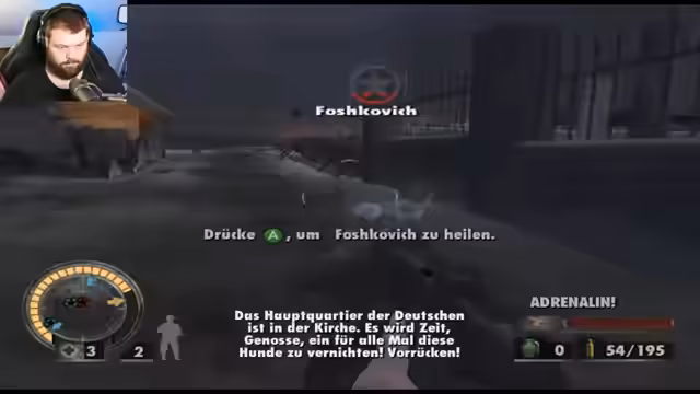 03:28:27Im weiteren Verlauf der russischen Mission stellt sich eine hohe Herausforderung: Der Spieler ist fast ohne medizinische Versorgung und Munition in einen Kampf verwickelt. Die Jagd auf den feindlichen Agenten Walter Neumann gestaltet sich äußerst schwierig. Nach anfänglichem Scheitern des direkten Angriffs gelingt es durch geschickten Einsatz von Deckung und der gefundenen RPG eine erfolgreiche Bekämpfung. Trotz verpasster primärer Ziele wird der Kampf mit der Zerstörung des deutschen Geschützes und der Verteidigung eines Gebäudes als erfolgreich angesehen.