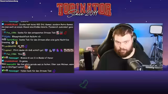02:04:14Nach erfolgreichem Abschluss des Missionsabschnitts und dem Ende des Spiels wertet der Streamer das Gameplay positiv und betont, wie anders Shooter früher im Vergleich zu modernen Titeln waren. Er drückte seine Freude über den gespielten Retroabend aus und bedankt sich bei einem langjährigen Supporter namens "Müllkutscher" für dessen 112-monatiges Abonnement, beendet den Stream mit einer positiven Stimmung.