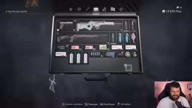 03:38:25Der Streamer kämpft weiterhin gegen widerstandsfähige Gegner und findet einen Kelch. Er sammelt grünes, gelbes und rotes Kraut und wünscht sich humorvoll Sauerkraut in der deutschen Version. Er muss Ashley durch einen Bereich führen und findet eine Kurbel für einen Kontrollpunkt. Er stellt fest, dass er auf 'einfach' spielt, weshalb die Kämpfe leichter sind. Nach einem Raid von 'Niniline vs. Lucifer' lädt er seine Flinte nach und setzt den Weg fort. Er erreicht einen Händler, verkauft Haarschmuck und einen Seidenkristall, um die Angriffskraft seiner Waffen zu erhöhen. Er stellt Flintenmunition her und steigert seine maximale Gesundheit. Er besiegt weitere Gegner und schließt ein weiteres Kapitel ab, wobei er sich auf die Burg freut, aber auch befürchtet, was ihn dort erwartet.
