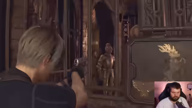 04:36:53Die Auseinandersetzung mit Salazars Schergen beginnt, wobei der Spieler die Umgebung nutzt, um Gegner zu eliminieren. Er entdeckt Goldplättchen und andere Wertgegenstände. Ashley macht dabei immer wieder Geräusche, die der Spieler kommentiert. Eine Notiz des Hausmeisters offenbart die düstere Geschichte eines Folterknechts der Familie Salazar und die Schrecken, die im Keller der Burg verborgen liegen. Der Spieler muss einen Schlüssel finden, um weiterzukommen, und es wird vermutet, dass nur der besiegte Gegner diesen besitzt. Die Schwierigkeit des Spiels wird angesprochen, wobei der Spieler erwähnt, dass er auf einem einfacheren Modus spielt, um das Spiel mehr genießen zu können, anstatt sich wiederholt durch die gleichen Szenen zu kämpfen. Ein Rätsel mit drei Schwertern und passenden Bildern muss gelöst werden, um den Weg freizumachen, wobei Hinweise wie eine Schlange und ein Adler helfen, die richtige Zuordnung zu finden. Die Erkundung führt durch verschiedene Gänge und Räume, wobei der Spieler immer wieder auf neue Herausforderungen und Gegner stößt.