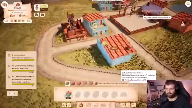 03:27:22Es wird spekuliert, dass "Ghost of Yotei" möglicherweise ein Jahr nach der Konsolenveröffentlichung auch für den PC erscheinen wird. Der Streamer beendet den Stream von "Ghost of Yotei" und wechselt zu "Town to City". Es wird kurz über die kostenlosen Playstation Plus Spiele gesprochen. Der Streamer macht eine kurze Pause und kündigt an, danach direkt mit "Town to City" zu beginnen. Es wird ein Clip aus einem früheren Stream gezeigt, in dem der Streamer über Hilti Passats spricht. Der Streamer erinnert sich nicht an den Clip, findet ihn aber lustig. Es wird überlegt, ob ein bestimmter Clip noch gezeigt werden soll, aber letztendlich wird darauf verzichtet. Der Streamer startet "Town to City" und nimmt die Einstellungen vor. Es wird ein neues Spiel begonnen und die Kameraeinstellungen werden getestet. Der Streamer plant, drei Häuser zu bauen und die Twitch-Autorisierung vorzunehmen. Die Twitch-Autorisierung gelingt problemlos. Der Streamer baut drei Häuser und erhält ein Achievement. Die erste Familie, die Pelletiers, kommt an und wird in ihr neues Zuhause eingewiesen. Der Streamer baut einen Marktplatz und verteilt die Arbeiter. Die Aufnahme endet.