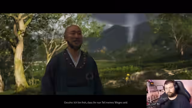 00:58:36Nach einer ausführlichen Begrüßung der Unterstützer und einer Diskussion über die anstehende Preisänderung des Xbox Game Pass wird das Hauptspiel des Streams, Ghost of Yotei, gestartet. Der Streamer wählt die deutsche Sprachausgabe mit deutschen Untertiteln und stellt die Kreativität des Spiels lobend heraus, insbesondere die Notwendigkeit, japanische Schriftzeichen zur Identifikation von Feinden nachzuzeichnen. Er erkennt visuelle Parallelen zu Assassin's Creed.