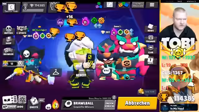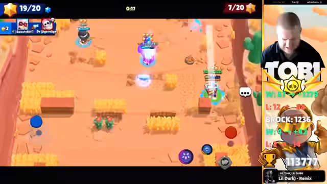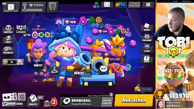 05:13:11Die übermächtige Bibi heilt mit einem Bug doppelt so viel, wie es vorgesehen ist, was das Pushen auf 300.000 Trophäen extrem erschwert. Zusätzlich ist das Matchmaking zurzeit bei über 2600 Trophäen mit 5-10 Wartezeiten pro Spiel viel zu lang und unattraktiv. Aufgrund dessen ist es momentan nicht sinnvoll, auf Prestige 3 zu pushen, da sich die Situation bei mehr Spielern in den kommenden Wochen wahrscheinlich verbessern wird. Spieler wie Radar und Rade sind kurz vor dem Ziel, stoßen aber auf die gleichen Hindernisse.