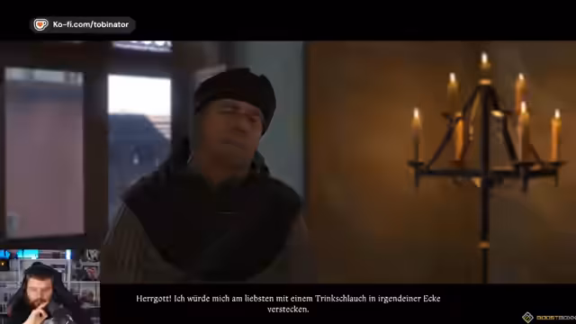 01:17:10Der Streamer leitet das Gameplay für Kingdom Come Deliverance 2 ein. Die aktuelle Mission beinhaltet die Konfrontation mit dem Münzmeister, der den Protagonisten erpresst. Es gelingt dem Streamer und seinem Verbündeten Heinrich, den Münzmeister mittels gefälschter Bücher zu überführen und ihn gefügig zu machen. Nach dem Erfolg wird die nächste Aufgabe vorgestellt: die Befreiung von Herrn Kaporn aus einem Gefängnis in Malleschau über einen Geheimgang.