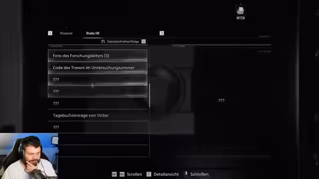 01:03:47Der Streamer stellt fest, dass Lego City inzwischen online ist und zeigt kurz den Startbildschirm. Er äußert seine Vorliebe für die Resident-Evil-Spiele, wobei Resident Evil 4 immer noch sein Favorit ist, auch wenn er sich mit Resident Evil 9 anfreunden könnte. Im Spiel erkundet er das Anwesen weiter, findet einen quaderförmigen Gegenstand und stellt fest, dass er nicht alle Gegenstände mitnehmen kann. Er findet Akten, darunter Tagebucheinträge von Victor, die Hinweise auf eine Forschung und ein Kind als Schlüsselpuzzlestück geben.