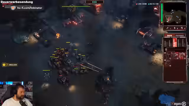 01:41:04Der Streamer unterbricht das Spiel kurz, um Schedule 1 einzuplanen. Er entschuldigt sich für die Unterbrechung und bedankt sich für die Geduld. Nach der Planung speichert er das Spiel und setzt es fort. Er kommentiert, dass die Gegner von verschiedenen Seiten angreifen und versucht, die Basis zu verteidigen. Dabei gibt es Schwierigkeiten, da die Einheiten nicht immer automatisch angreifen, wenn ein anderes Mitglied der Gruppe angegriffen wird. Der Streamer baut neue Energiequellen und versucht, die Einheiten hochzubringen, um die Verteidigung zu verstärken. Es kommt zu heftigen Kämpfen, bei denen der Streamer Einheiten verliert und neue Einheiten produziert, um den Angriffen standzuhalten.