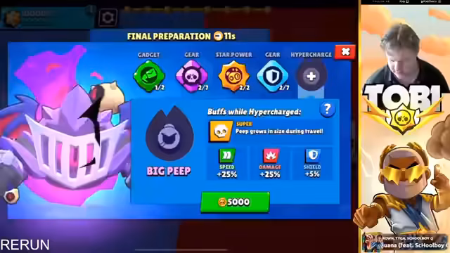 04:50:29Der Streamer nutzt eine Pause zwischen den Spielen, um über seine zukünftigen Pläne zu sprechen. Er seinenkt eine Ranglisten-Medaille und will unbedingt 'Master' erreichen. Gleichzeitig überlegt er, welche 'Hypercharge'-Upgrades er als nächstes kaufen soll. Er stellt den Chat in die Frage, was er mit seiner ansehnlichen Menge an Coins tun solle, und listet verschiedene Brawler auf, die er verbessern könnte.