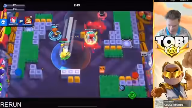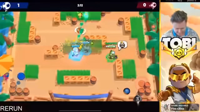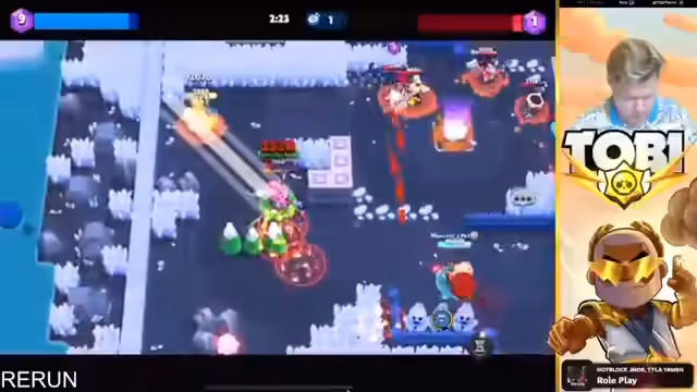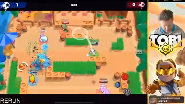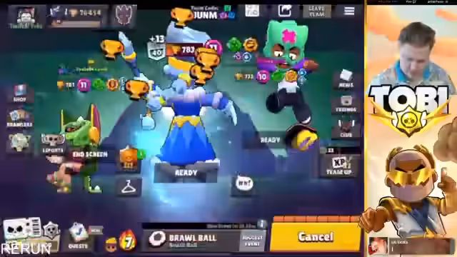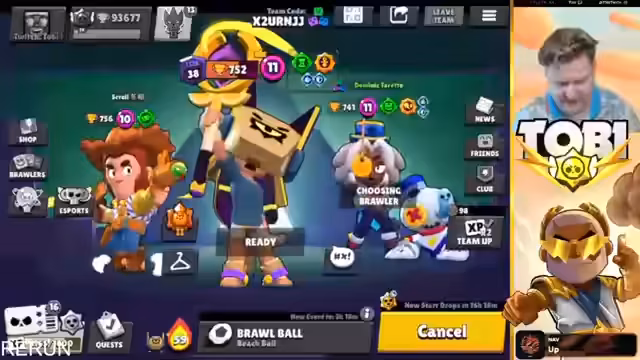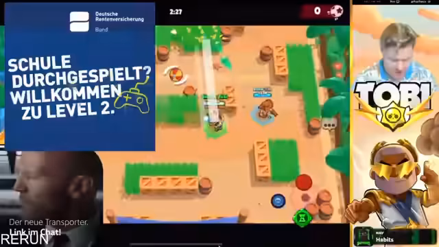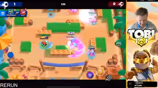 15:55:17Der Streamer beobachtet und ärgert sich über nerviges Gegnerverhalten während des Spiels. Es wird über die Stärken verschiedener Brawler wie Oli und Mr.P Hypercharge diskutiert. Gleichzeitig kündigt eine neue Hot Zone Map an, auf die der Streamer sich besonders freut. Es wird nach Helfern gesucht, die beim Pushen von Landy auf 1.000 Trophäen assistieren können, wobei Spieler mit Power 10 oder 11 Brawlern bevorzugt werden.
