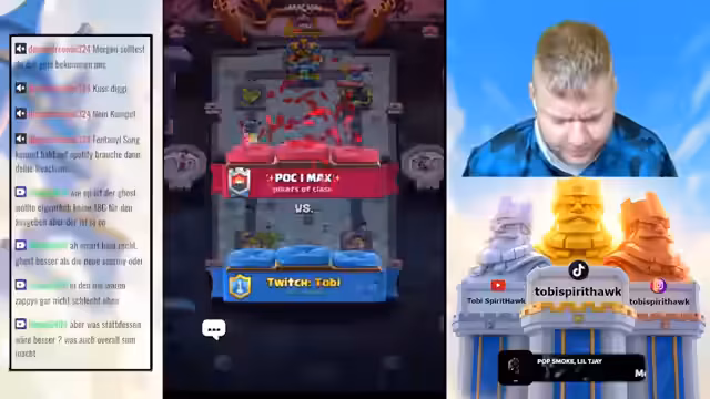 01:59:27Während des Streams werden mehrere Cl Royale-Spiele gespielt und analysiert. Der Fokus liegt auf dem Testen verschiedener Decks wie Golem, Rocket Cycle und Poison. Die Leistung wird intensiv kommentiert, wobei bestimmte Karten und Strategien wie Evo-Skelett, Lightning und der Golem als entscheidend für den Sieg oder die Niederlage bewertet werden. Es werden sowohl Erfolge als auch Fehler im Gameplay offen analysiert.