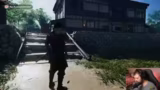 02:02:03Nach dem erfolgreichen Start und den Konfigurationen beginnt der Streamer mit dem Storymodus von Ghost of Tsushima. Die Erzählung stellt den Protagonisten Jin Sakai als letzten Samurai vor, der gegen die mongolische Invasion kämpft. In den ersten Spielminuten steuert Jin durch eine Schlacht, verliert jedoch sein Schwert und muss sich unbewaffnent durch das Gebiet bewegen. Er lernt die Grundlagen der Steuerung, wie das Ducken und das Nutzen der Umgebung, um unerkannt an Gegnern vorbeizuschleichen.