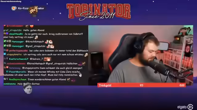 00:17:37Der Streamer erzählt von einem besorgniserregenden Vorfall mit seinem Hund Eddie, der einen allergischen Schock erlitt, vermutlich durch einen Wespenstich. Dieser führte zu Erbrechen und Durchfall, was eine Notfahrt in die Tierklinik und eine Behandlung mit Schmerzmitteln und Cortison erforderlich machte. Parallel dazu werden die ersten Holy-Bestellungen über einen eigenen Code erwähnt und die positiven Erfahrungen mit dem Produkt, insbesondere die Verträglichkeit des Süßstoffs, geteilt.