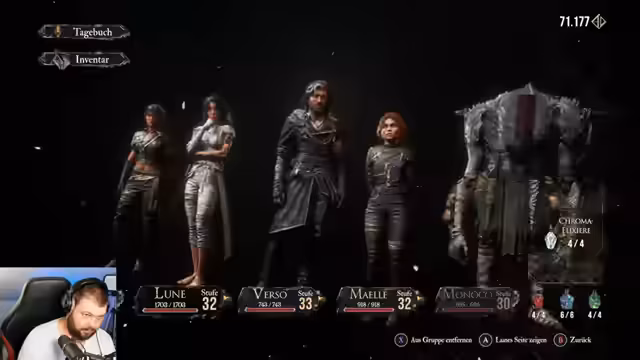 02:17:48Der Stream beginnt mit einem humorvollen Einstieg in das Spiel Claire Obscure Expedition, wobei der Fokus auf der Charakterentwicklung liegt. Es wird über die Stärken der Charaktere gesprochen und der Versuch unternommen, neue Fähigkeiten und Waffen zu sammeln und zu verbessern. Der Streamer erkundet optionalen Gebiete, kämpft gegen Gegner, sammelt Pictos und verbessert seine Ausrüstung, was den Kern des Gameplays während des gesamten Streams darstellt.