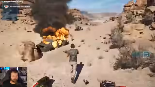 03:32:40Nachdem das Fahrzeug durch einen Angriff stark beschädigt wurde, versucht der Streamer weiterzufahren. Während der Fahrt wird die Uneinigkeit mit der Figur Rigby deutlich, deren Zuverlässigkeit und Integrität angezweifelt werden. In einem kurzen, spontanen Abschlusskommentar über die aktuelle Streamsitzung, die Länge der Story und die erwarteten 60 Euro Preisklasse, endet der Stream mit der Hoffnung, das Spiel mit einem Kollegen, Putzi, fortsetzen zu können.