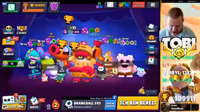 00:41:04Aufgrund von Skepsis im Chat stellt der Streamer klar, dass das Erreichen von 300.000 Trophäen ernstzunehmen ist und kein Clickbait. Er verweist auf frühere Erfolge, wie den ersten Platz in Deutschland ohne Windraten bei 100k Trophäen, um seine Seriosität zu unterstreichen. Nach dem Erreichen des Ziels sei es wahrscheinlich sinnvoller, weiter auf Pro zu pushen, da das Pushen jedes Brawlers auf 3k Prestige danach wenig Sinn ergeben würde.