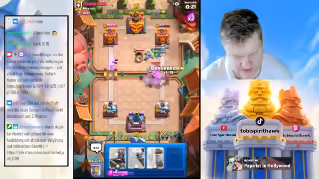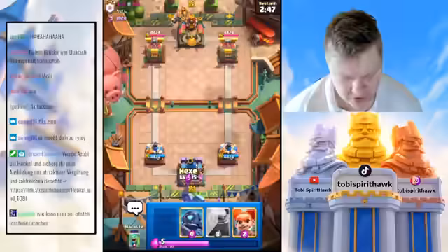 03:55:15Nach anfänglicher Begeisterung während seiner Rückkehr zum Clash Royale-Streamen, zeigt der Streamer zunehmend Motivationsverlust. Er kritisiert Entwicklungen wie das neue Level-System und die Monetarisierungsstrategien des Spiels, die seiner Meinung nach den Hype schmälern. Trotzdem plant er, weiterhin zu streamen, bleibt aber unzufrieden mit der aktuellen Spielentwicklung.