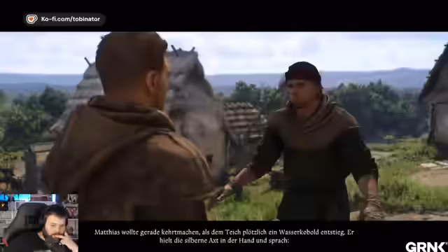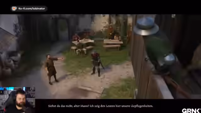 02:00:21Der Streamer beginnt mit einer Erzählung über einen Grundstücksstreit in Tachau, bei dem die Gellejova eine Weide gestohlen haben haben sollen. Anschließend trifft er einen Charakter namens Stanek, der versucht ihm traurige Geschichten zu erzählen. Der Streamer stellt sich als Heinrich vor und zeigt Interesse an den Geschichten von Stanek, jedoch nur gegen Bezahlung in Form von Alkohol oder Groschen.