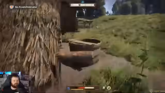 03:35:18Der Streamer findet den betrunkenen Jäger, der ihm aufträgt, seinen Hund Peppik zu suchen. Der Jäger beschreibt den Hund als dunkel und schnell und erwähnt, dass Wilderer ihn wahrscheinlich gestohlen haben könnten, deren Lager in der Nähe sein soll. Der Streamer erhält zusätzlich die Jagdarmbrust des Jägers als Belohnung, falls er den Hund findet.