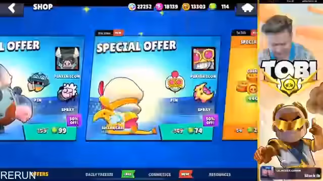 22:40:05Nach fast fünf Stunden Stream möchte der Streamer den neuen Brawler 'Finn' auf 2000 Mastery-Punkte pushen, nachdem er ihn auf 1000 gebracht hat. Er ist sehr gespannt auf die Performance und den neuen Hyper-Skill. Er bewertet den Skin-Preis von 24 Euro als zu teuer und rät davon ab, es sei denn, man hat bereits alle anderen Inhalte gekauft und noch Geld übrig. Er sieht den Skin als Marketing-Gag, der sich nicht lohnt.