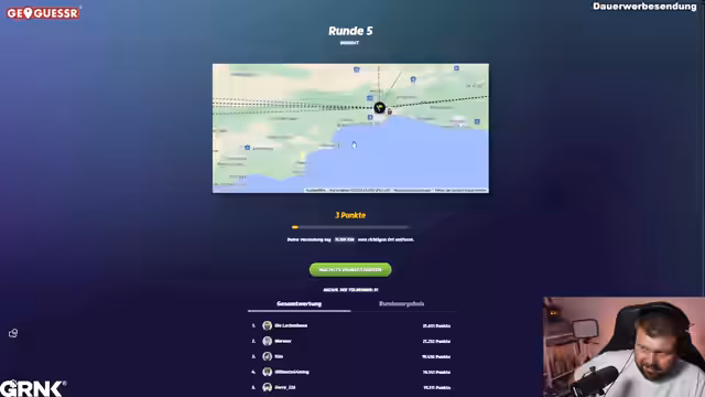 03:19:12In einer Runde Geoguessr mit Fokus auf Stadien hatte der Streamer anfängliche Schwierigkeiten, deutsche Städte wie Mönchengladbach auf der Karte zu finden, obwohl er kürzlich dort gewesen war. Er spielte eine Runde in England und identifizierte Crystal Palace, verwechselte es aber kurzzeitig mit Swansea. Es folgte die Suche nach dem Rosenaustadion in Augsburg, Bayern, wobei er die Nähe zu Nürnberg erwähnte. Anschließend fand er das Stadion von Leverkusen relativ schnell. Er lobte sein sieben Jahre altes iPad Pro für seine Akkulaufzeit beim Streamen. Es folgte die Ankündigung, dass am Samstag Doom Spire gespielt wird und eventuell noch Zeit für Minecraft bleibt. Ein Zuschauer erwähnte seine bevorstehende Hochzeit, woraufhin der Streamer scherzhaft alle Zuschauer einlud. Nachfolgende Runden führten zu Stadien in den Niederlanden und Belgien, wobei er die Schwierigkeit der Lokalisierung betonte und erwähnte, dass er in der Vergangenheit in der Region Urlaub gemacht hatte. Er identifizierte das Civitas Metropolitano Stadion von Atletico Madrid und suchte anschließend nach der Kefum Arena in Norwegen, die er in Oslo lokalisierte. Weitere Stationen waren Paris, wo er das Stadion von Paris Saint-Germain suchte, und Rumänien, wo er sich über französische Flaggen wunderte. Die Suche nach dem Stadion von Energie Cottbus gestaltete sich schwierig, bevor er schließlich das SK Stadion in der Slowakei fand. Zum Ende des Streams spielte er mehrere Runden Geoguessr mit Stadien, wobei er oft auf die Hilfe des Chats angewiesen war und Schwierigkeiten hatte, die genauen Standorte zu bestimmen.