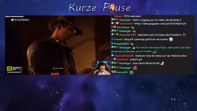 00:53:54Es wurde angekündigt, dass im Stream Geoguessr und Minecraft gespielt wird. Zuerst sollen ein bis zwei Runden Geoguessr gespielt werden, bevor es dann zum Abschluss noch ein bisschen Minecraft geben wird. Zuvor gab es noch eine Danksagung an Viabai für 82 Monate Tier 3, Lunaya für elf Monate, SoRachelBeer für 20 Monate, Loxley für vier Monate und MissBlubble für 34 Monate. Die Dresdner Eierschäcke erhielt einen Dank für 100 Bits, Kalle, die Bombe für einen neuen Prime-Sub, ein Vorstadtfrosch für 17 Monate, Dominik1296 für 52 Monate, KKC1 für 10 Monate, Kuschelweich für 33 Monate, Alter Förster für 71 Monate und Perrox1982 für 6 Monate. Außerdem wurde den Geschenksubs von Manfred und Handzeigern gedankt.
