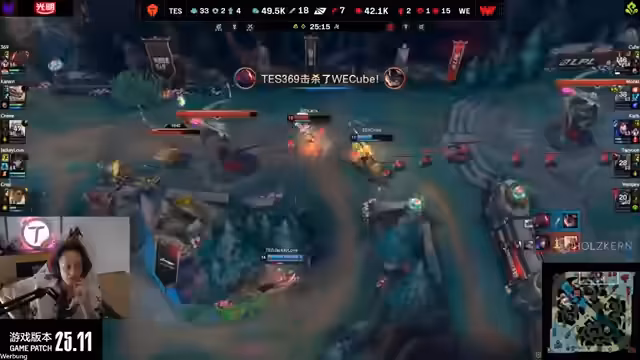 03:27:44Das Spiel neigt sich dem Ende zu. Der Streamer kommentiert den überlegenen Jungle-Diff, den Kanavi im gesamten Spiel gezeigt hat, und erwähnt, dass Baichuan von BD ihn in der vorherigen Serie komplett gestompt habe. Der Fokus liegt auf den Kills und der überlegenen Teamfighting-Fähigkeit von Top-E-Sports. Kanavi nutzt seine Fähigkeiten erneut, um weitere Kills zu sichern und das Spiel für sein Team zu entscheiden. Das Ergebnis ist ein klarer Sieg für Top-E-Sports, die im Lower Bracket bleiben.