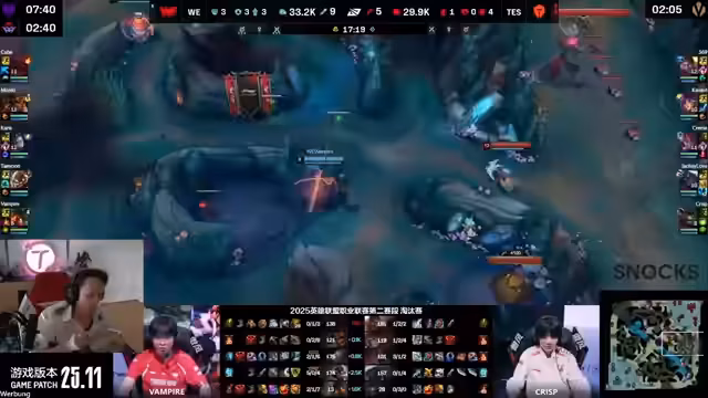 07:28:42Team WE setzt seinen dominanten Lauf fort und eliminiert Top-E-Sports mit einem klaren 3-0 in der Serie. Trotz anfänglicher Schwierigkeiten in der Regular Season zeigt das Team eine unglaubliche Turnierleistung und schlägt einen großen Favoriten. Top-E-Sports scheidet als Fünfter/Sechster aus und verpasst sowohl den Titel als auch die Teilnahme an MSI. Dies wird als eine große Enttäuschung und als beeindruckender Durchmarsch der Außenseiter seitens Team WE gewertet.
