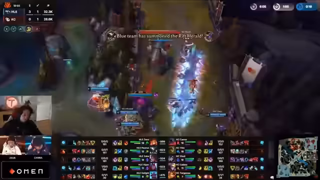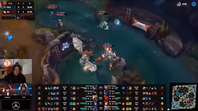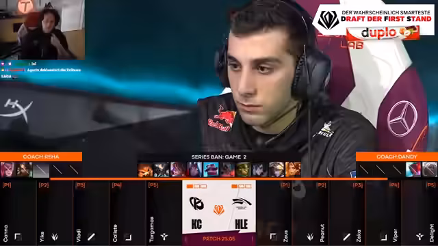 00:02:40Der Streamer begrüßt das Publikum und gibt an, dass das Grand Finale in etwa 40 Minuten beginnen wird. Er äußert sich zur Turnierstruktur und prognostiziert, dass wahrscheinlich maximal vier Spiele gespielt werden. Als Favorit für das Finale zwischen KC und HLEbo5 wird Hanwha Live genannt, das in der Round Robin die knappsten und längsten Spiele gegen KC gespielt hat. Ebenfalls wird die neue Fearless-Draft-Formatierung besprochen, die als dauerhafte strukturelle Änderung im Profi-Play gilt und mehr Champion-Vielfalt bringen soll. Die Stimmung ist trotz der klaren Favoritenstellung für HLEbo5 für das europäische Team KC, das als Underdog ins Finale geht, sehr enthusiastisch.