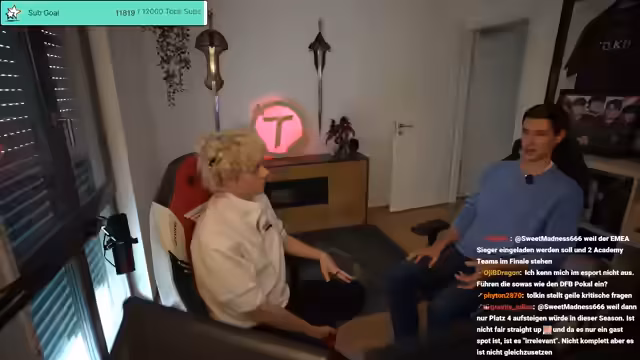 00:22:11Das Team Lost-O-Tones wird nächstes Jahr für mindestens einen Monat nach Berlin kommen, um in der LEC zu spielen. Ihr Erfolg, nur ein einziges Best-of-Five in zehn Monaten verloren zu haben, wird als 'komplett kranker Run' bezeichnet. Der Übergang von einem content-fokussierten Streamer-Team zu einem stark wettbewerbsorientierten Team wird thematisiert. Es wird betont, dass der Erfolg die Erwartungen erhöht und mehr Aufwand für den Erfolg erfordert, was bedeutet, weniger Content zu produzieren und mehr Off-Stream-Scrims zu haben. Dies kollidiert mit dem ursprünglichen Konzept eines Streamer-Teams, da professionelle LEC-Teams keine öffentlichen Scrims wünschen. Es wird befürchtet, dass dies den Charme des Live-Erlebnisses für die Zuschauer mindert und das Team zu einem reinen 'Pro-Team' macht. Die Schwierigkeiten, ein Streamer-Team erfolgreich zu führen, werden hervorgehoben, da die öffentliche Natur der Kommunikation im Team eine entspannte Feedback-Kultur erschwert und zu Missverständnissen führen kann. Es wird angedeutet, dass Baus, einer der Spieler, das Team verlassen könnte, da er das Streaming nicht aufgeben möchte und das Team sich immer mehr in Richtung eines professionellen Teams entwickelt. Die Aufhebung der Regel, dass drei von fünf Spielern aus der jeweiligen Region kommen müssen, wird als interessante Änderung von Riot Games erwähnt.