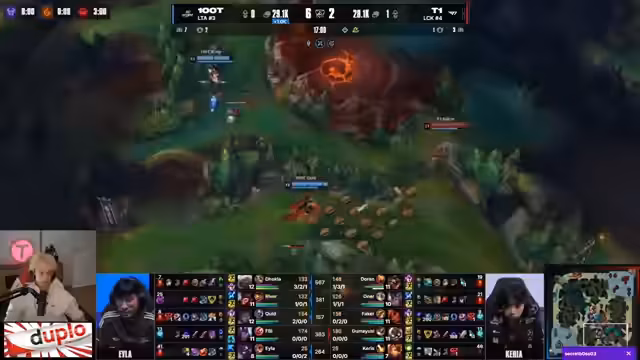 11:00:41Ein Top-Lane-Gank auf Atakan scheitert, da Doran einen schlechten Flash nutzt. Akali, gespielt von Quid, zeigt jedoch beeindruckende Plays und versucht, die Gegner zu upplayen. Trotz eines 2-für-1-Trades, der eigentlich ein Erfolg ist, verspielen die Diebe die Chance, Objectives zu sichern, indem sie nicht sofort Base gehen und den Drake vorbereiten. Dies wird als strategischer Fehler angesehen, da sie in Überzahl waren und Jarvan ohne Teleport gespawnt ist. Quid wird für seine aggressiven und mutigen Plays gelobt, obwohl sein Team die daraus resultierenden Vorteile nicht konsequent nutzt. T1 kann aus diesen Fehlern Kapital schlagen und sich den Drake sichern.