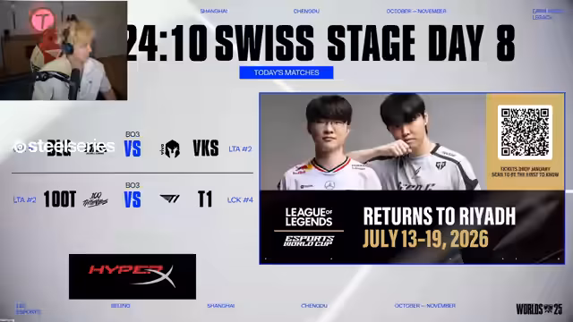 Die Worlds Swiss Stage erlebt spannende Eliminierungsspiele. BLG besiegt Vivo Keyd Stars in einem chaotischen Match, das von frühen Fehlern und einem entscheidenden Backdoor-Play geprägt ist. Anschließend setzt sich T1, der amtierende Weltmeister, gegen 100 Thieves durch, die trotz einer starken Leistung und eines harten Spielplans ausscheiden. Die Diskussion konzentriert sich auf die Draft-Strategien und die spielentscheidenden Momente beider Begegnungen.