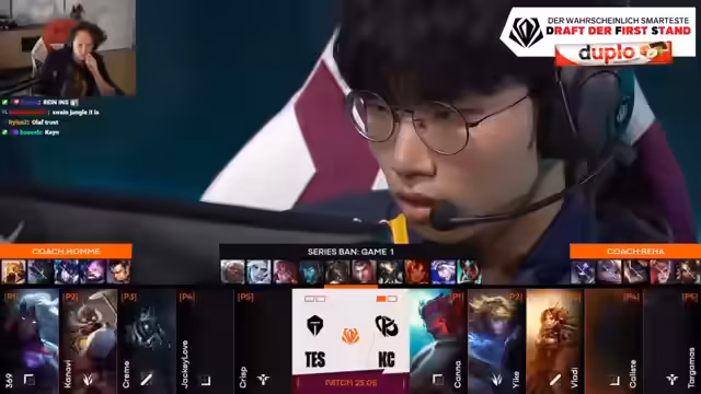 00:02:16Der Stream beginnt mit Begrüßungen des Streamers Tolkien. Er spricht den hoch angespannten Do or Die Tag von Europa an, bei dem bei einer weiteren Niederlage das Aus im First End Tournament droht. Die Gegner aus China und Korea werden als sehr stark eingeschätzt. Der Streamer äußert eine gemischte Erwartungshaltung und plant, die Spiele mit gesunder Mischung aus Spaß und trockenem Humor zu begleiten, da er seine eigenen Teams nicht als Favoriten sieht. Er erwähnt die Philist-Draft-Debatte im Esport und warum sie für Unterhaltung, aber eventuell auch für Storylines bei großen Turnieren problematisch sein könnte.