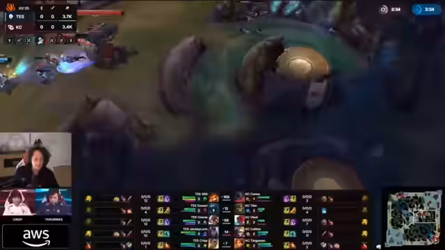 03:13:11Im frühen Spiel sieht man, dass der Draft von Top-E-Sports im Vergleich zu Game 1 deutlich schwächer ist. Der Skarner und vor allem Talia agieren besser als Yon und Ivan, da sie eine stärkere Synergie aufweisen. Kanavi als primärer Carry zeigt sich sehr gold-effizient und im letzten Game stark gefarmt. Yikes Vladimir matchuppt im Early Game 100% gegen Vlad, was den Anfang des Games prägt und eine frühe Priorität auf Top- und Mid-Lane für K-Cop bedeutet.