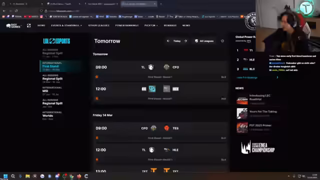 03:55:35Stream-Talk fokussiert sich auf die anstehenden Spiele von 'First Stand'. Es werden verschiedene Szenarien für das Team KC durchgespielt, um ihre Chancen auf ein Weiterkommen zu bewerten. Ein Sieg von KC gegen Hanwha live ist der Hauptweg, jedoch muss man auch auf eine Niederlage von Top E-Sports gegen CFO hoffen. Die Kommentatoren sehen eine realistische, aber geringe Chance, dass KC weiterkommt, und betonen die Wichtigkeit von Ergebnissen der anderen Teams, insbesondere von Liquid gegen CFO.