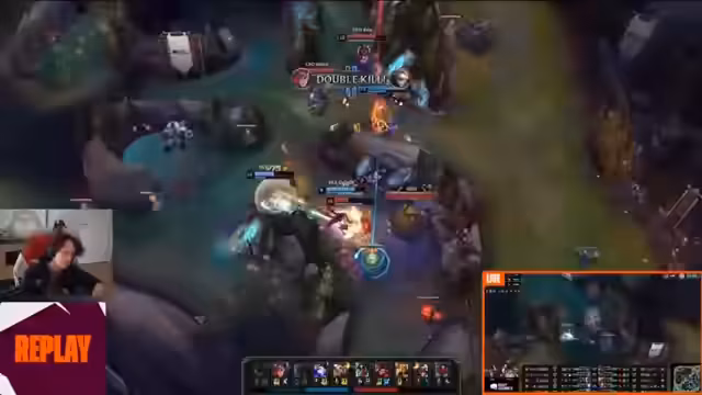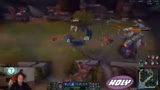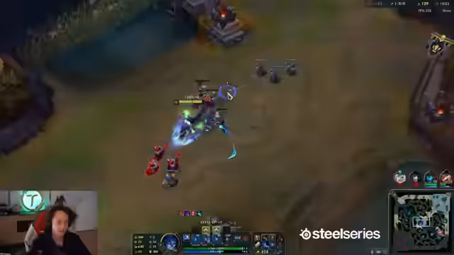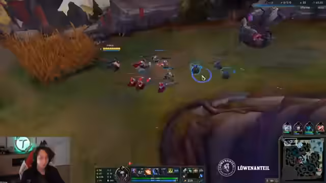 01:57:42Der Streamer wechselt für kurze Zeit das Bild, um Gameplay zu zeigen. Er äußert sich negativ über das neue User-Interface von League of Legends. Die größten Kritikpunkte sind, dass wichtige Informationen wie Statistiken und Spielercamps schwerer zu vergleichen sind, da sie nicht nebeneinander, sondern untereinander angezeigt werden. Spielercamps werden zudem als zu klein empfunden.