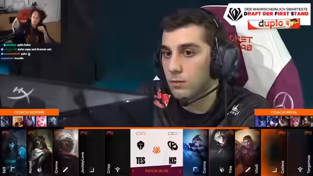 00:55:34Der Streamer analysiert die Ausgangslage für das Spiel von K-Corp (KC) gegen Top Esports (TES). Er ist der Meinung, dass KC den Sieg einfahren sollte, sieht aber auch TES als sehr stark an. Für KC sei es wichtig, nicht zu nervös zu sein, da sie bereits eine Niederlage kassiert haben. Der Kommentator vermutet, dass TES starke Einzelspieler hat, aber KC als Team besser funktionieren könnte. Er ist gespannt, ob KC heute einen Sieg einfahren kann und wie die Teams agieren werden, da der Druck nun auf den unterlegenen Teams liegt.