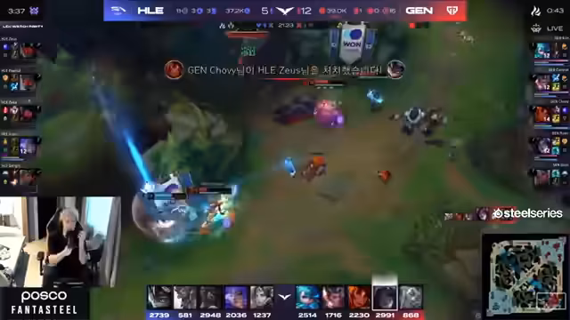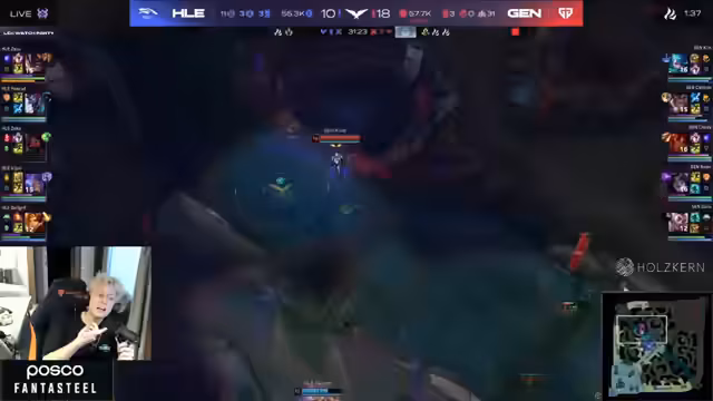 01:10:35Gen.G führt einen perfekt vorbereiteten Teamfight aus, was zu einem Triple Kill und einer massiven Goldführung führt. Der Streamer lobt die über drei Minuten hinweg geplante Strategie von Peanut. Der Sieg in Game 1 gilt als fast unmöglich zurückzuholen, da HLE nun den nächsten Drake verlieren wird und der Spielstand sehr aussichtslos erscheint. Gen.G bestätigt seine starke Form aus der Regular Season.